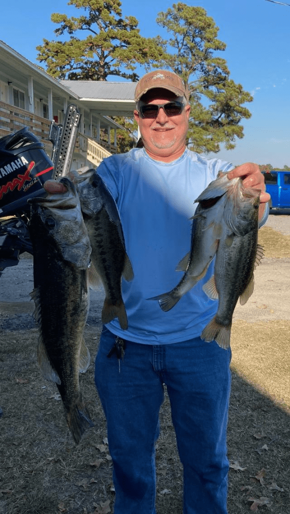 On a beautiful fall day with light winds and temps in the high 70’s, Dwayne Teague caught 3 fish weighing 6.71lbs to take 1st place. JD Dendy had 3 fish for a total of 5.51lbs to take 2nd. Taking 3rd with 2 fish weighing 4.32lbs was Malcolm Murdock. JD had the big fish of the tournament at 3.18lbs. A total of 13 fish were weighed in for a total of 25.28lbs, an average of 1.94lbs.